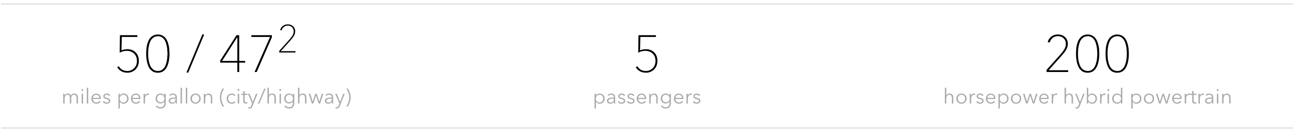 Enjoy the excitement and performance of driving a 200-horsepower1, hybrid sport sedan. With a 50 city/47 highway mpg rating,2 the hybrid powertrain recovers energy while braking and delivers impressive efficiency—which can help you save on fuel costs.