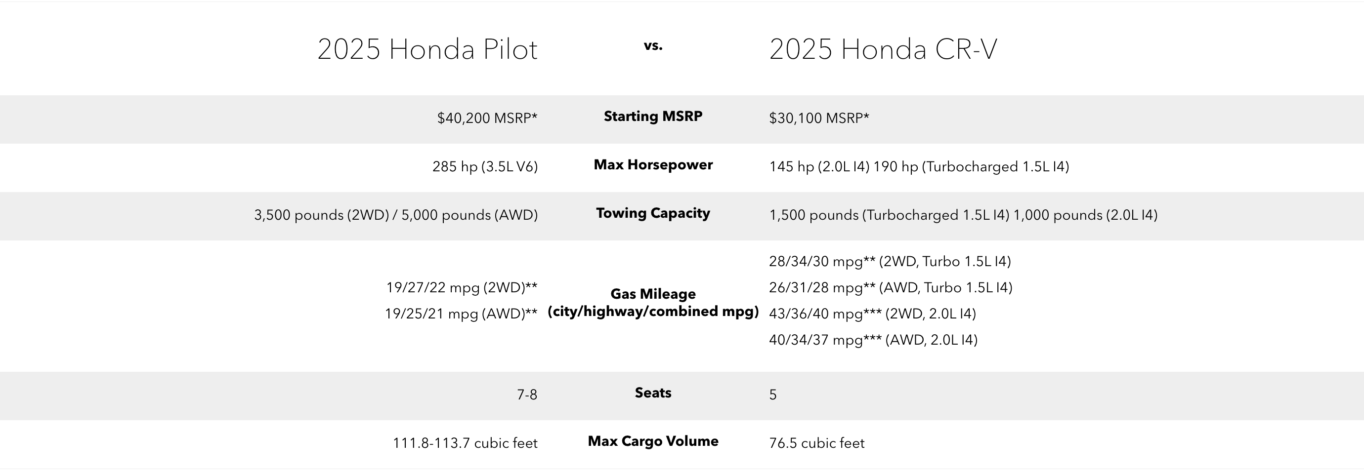 2025 Honda CR-V vs. Honda Pilot Specs: Which is More Powerful?